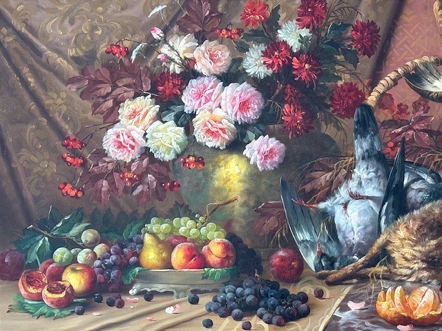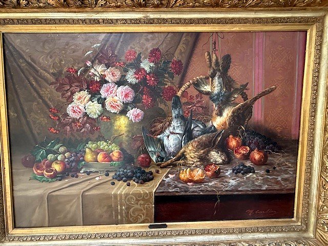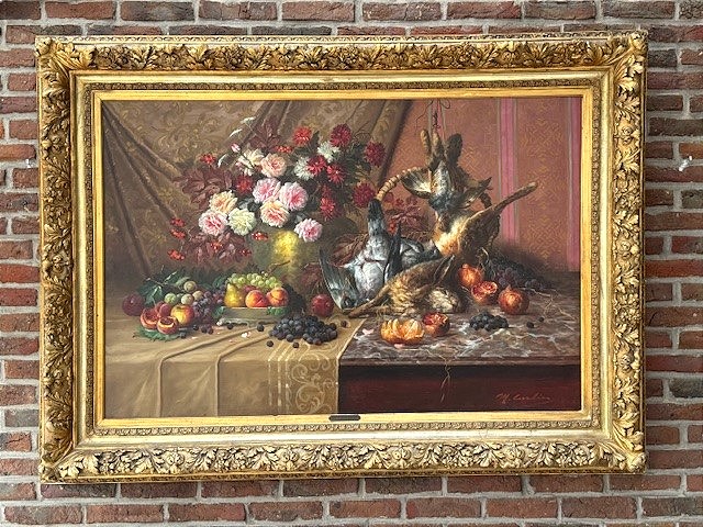 A large still life by the belgian painter Max Carlier  (Tourcoing 1872 - 1938 Schaerbeek )