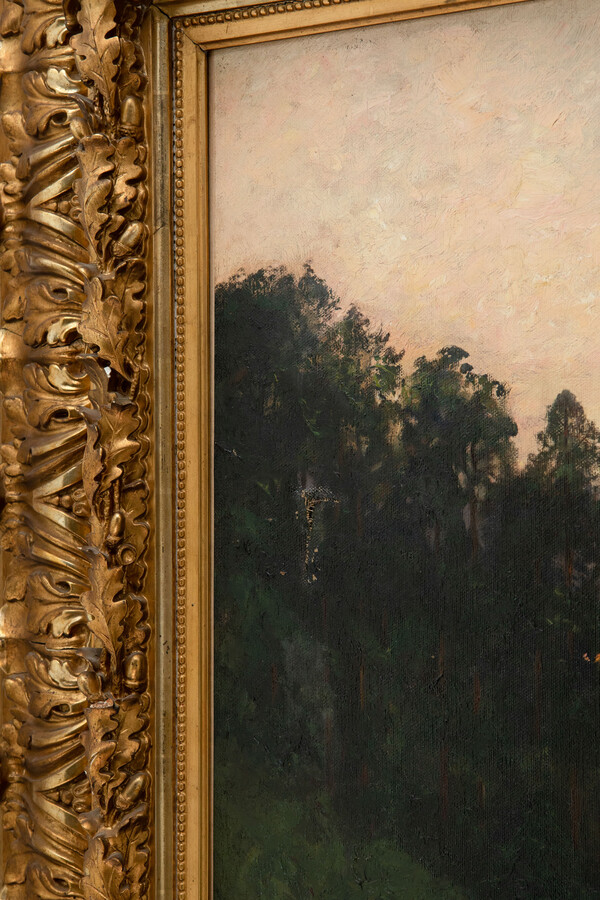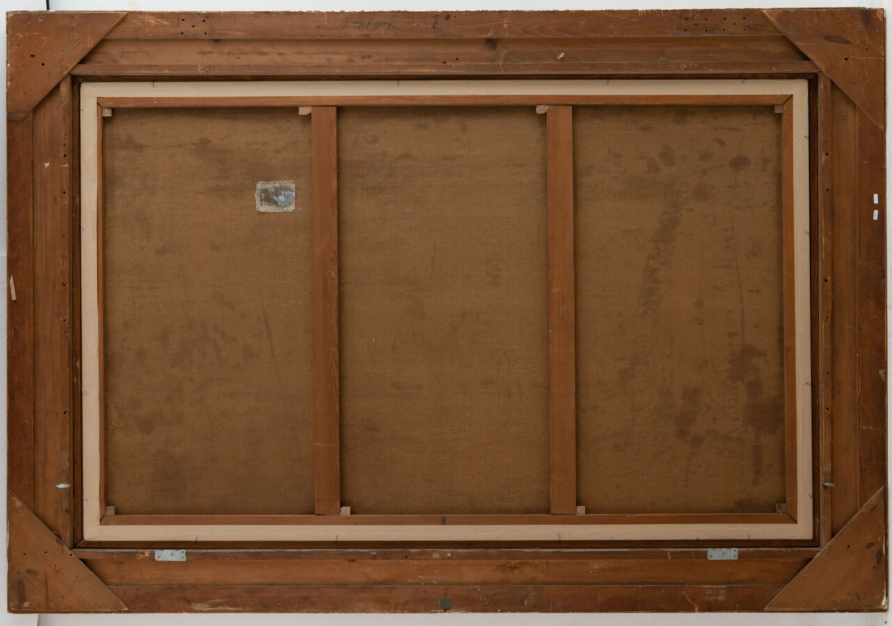 Beautiful and very big Oil on Canvas. One small damage top right and the painting needs a good cleaning. Beautiful gilt gesso-wooden frame