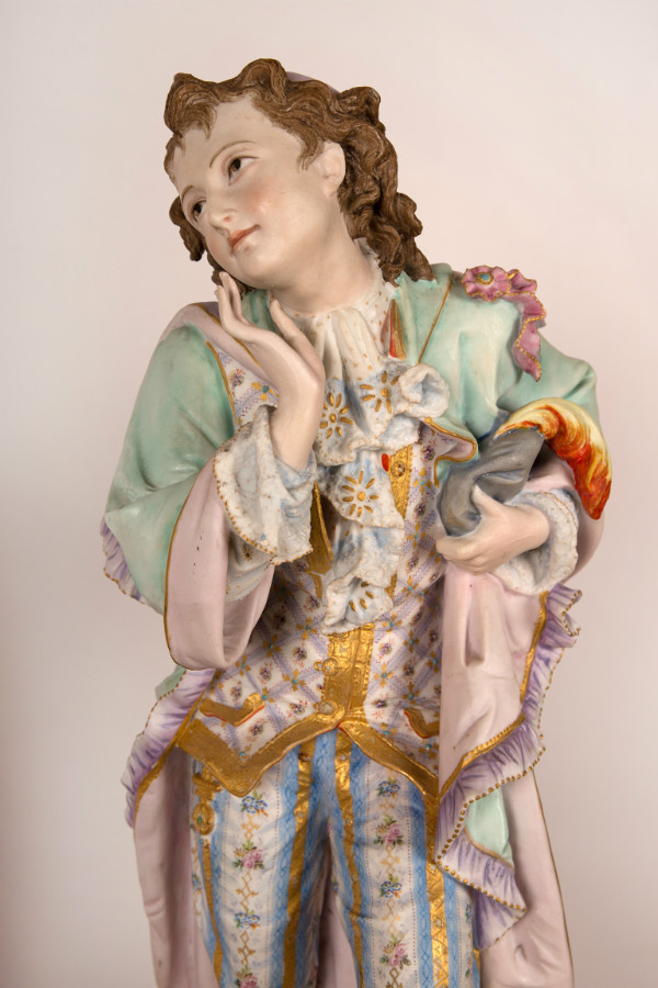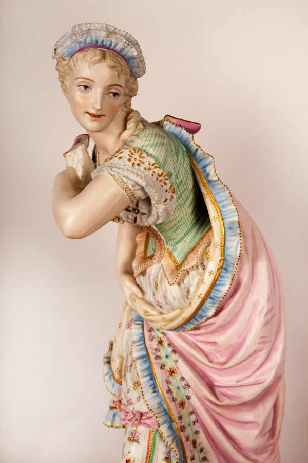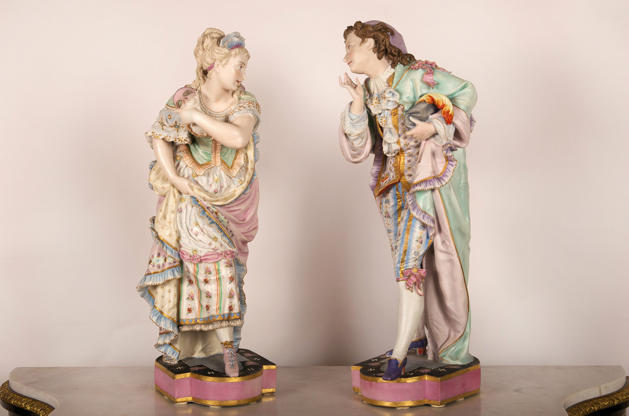 In excellent condition ! Lovely pair of fine quality painted biscuit porcelain figures. With highlights in gold. Manufactured by the Parisian factory Vion et Baury, marked underneath VB.
