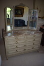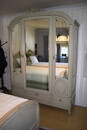 A beautiful Louis XVI style polychrome bedroom suite comprising a 3-door wardrobe , 2 beds , psyché , commode-mirror , 2 nightstands , 2 chairs and an oval mirror , France circa 1880