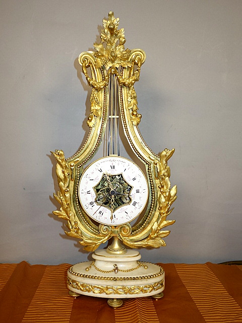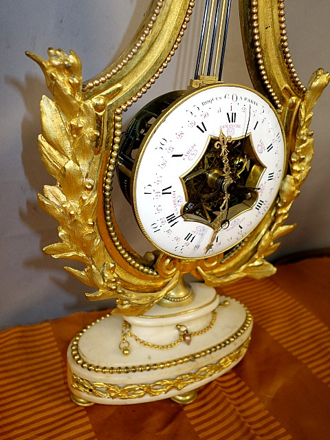 Lyra Mantel Clock 18th Century signed Roque a Paris