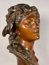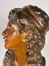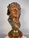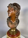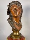 A beautiful bronze bust of Suzon by Auguste Rodin standing on a gilt bronze and Rouge Griotte marble turning base , foundry : Cie des bronzes Bruxelles