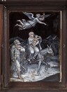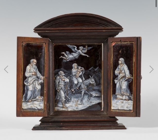 A 16th century Limoges triptych representing the Holy Family fleeing to Egypt , some losses in the enamel